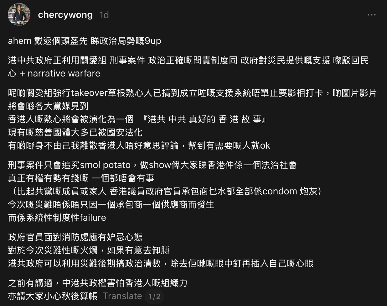 When the Chief Executive John Lee stepped in for a press conference, he first gave thanks to Xi Jinping and the PRC government. It wasn’t until he was half way out the door before he annoyingly turned around to responded to questions on why he didn’t bother to thank firefighters or first responders.